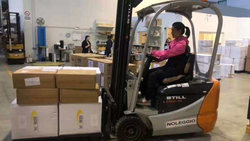 It is this group of lovely Euripides who give up their weekends and evenings off to urgently package, label, classify, input into the system, and create customs clearance documents for the goods transported from various parts of Italy. They then charter a car to transport the goods to the airport at the designated time. Ms. Zhou Xiaoping, Vice President of Oulide Group, felt sorry for her subordinates who had caught a cold and personally went on a forklift to transport goods.