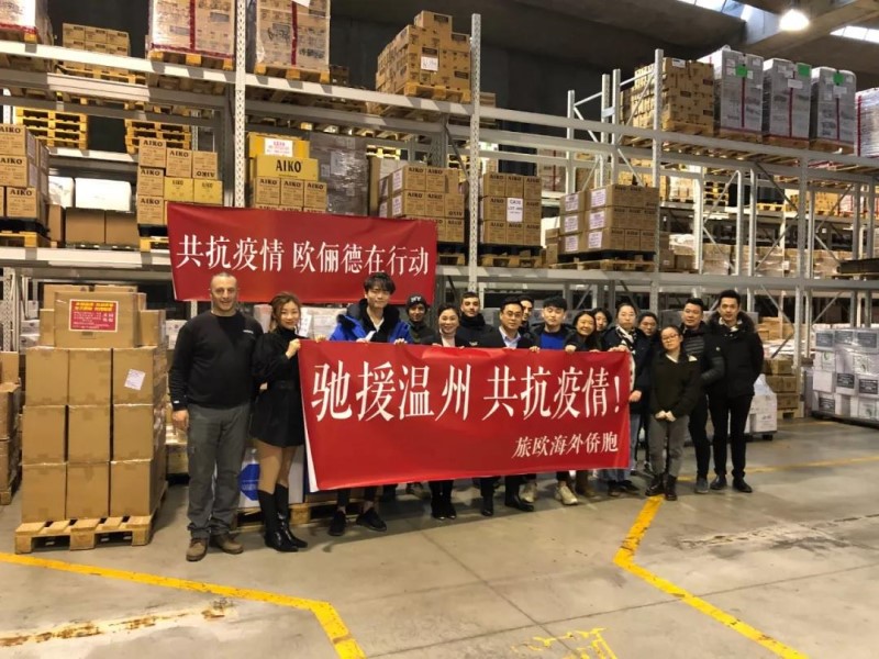 Euryde's Florence headquarters ceased all commercial activities as early as January 22 and utilized its procurement resource advantages to search for medical supplies such as masks. Millions of medical masks were collected with zero profit by Euryde Group and voluntarily palletized and labeled.On January 30th, direct flights between China and Italy were grounded,17 Italian overseas Chinese groups encountered difficulties while preparing for customs clearance procedures. Due to the suspension of the aircraft, we can only save the country through a curve. Mr. Fang Dehui, Vice President of Oulide Group, immediately contacted Xie Dong, Director of the Ouhai District Bureau of Commerce, in Wenzhou and asked for his help.Director Xie immediately acted as a liaison and urgently coordinated resources from various parties, including customs, aviation, and provided guidance on how to go through the donation procedures, providing great help. On January 31st, the headquarters of Euclid in Florence mobilized company vehicles and transported these goods for nearly 20 hours to a warehouse near Liege Airport in Belgium, 1200 kilometers away. On February 7th, this batch of 700000 masks flew from Belgium to Hangzhou. This is the secondary cooperative transportation after the COVID-19 epidemic, and the process is tense, compact and difficult。